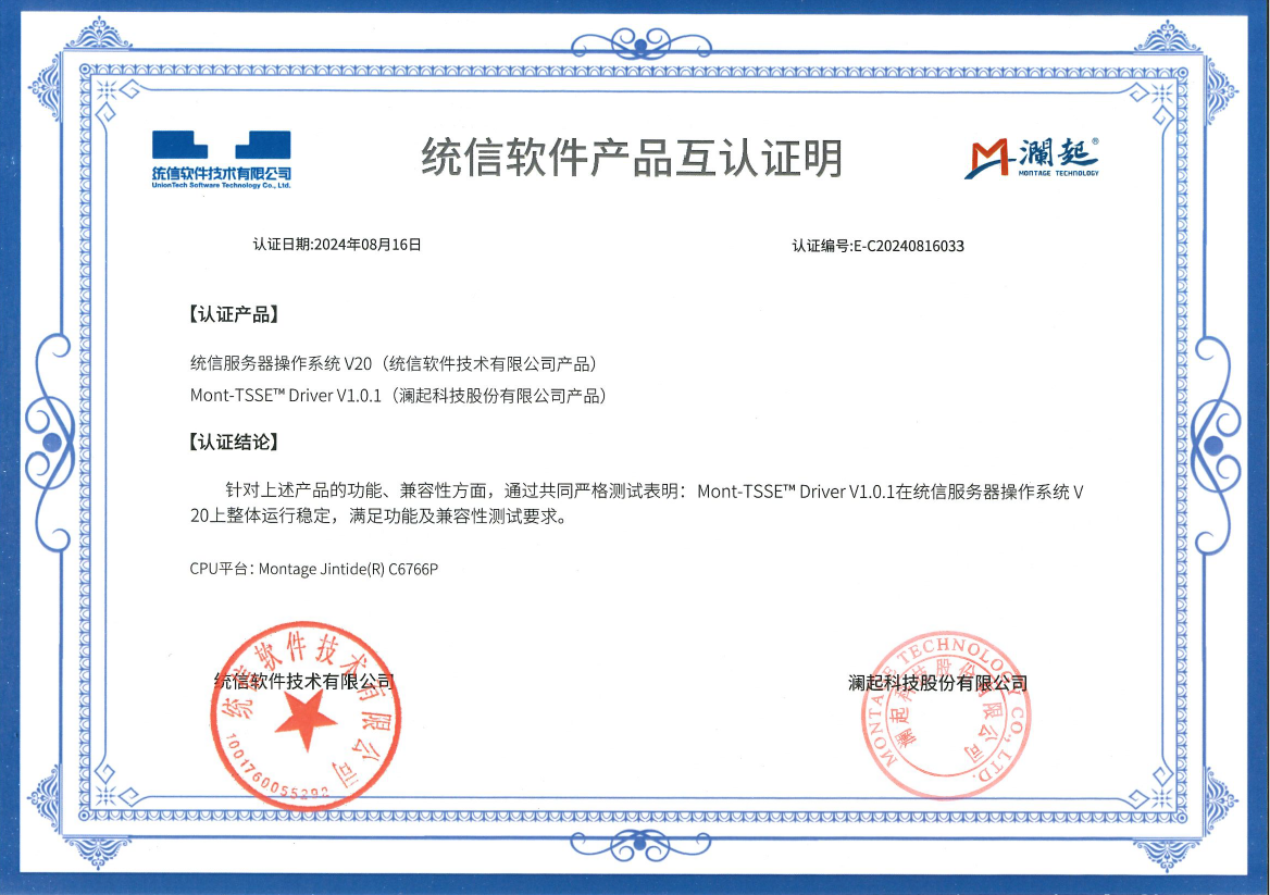 | Mont-TSSE® Driver | 统信软件 | 认证证书 |